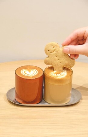 エスプレッソに少量のスチームミルクを加えた「コルタード」の2種類飲み比べセット。クリスマス限定の焼菓子付きです。