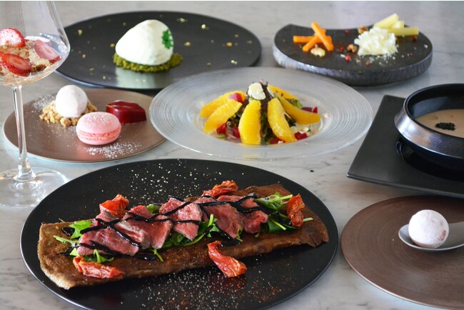この季節でしか食べられない白苺のトロンプルイユなど、旬の苺を贅沢に使ったスペシャルディナーです。クリスマスらしい華やかなプレートで大切な方との素敵な時間をお手伝いします。※ソラマチ限定