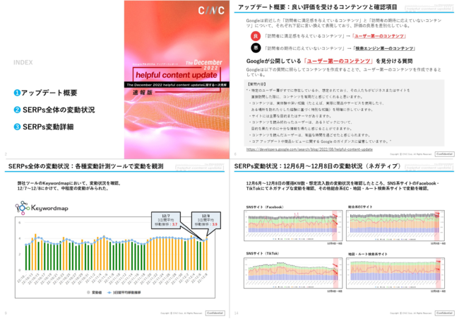 株式会社CINC(東京都港区 代表取締役社長 石松友典、以下 CINC)は、自社で開発・提供しているWebマーケティングの調査・分析ツール「Keywordmap(キーワードマップ)」を活用して、2022年12月7日にGoogeからリリースされた「The December 2022 helpful content update」について調査した一次見解レポートを公開しました。