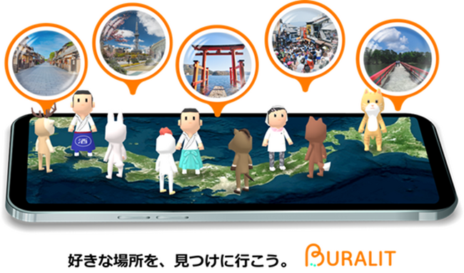 「BURALIT」は、360度カメラで撮影した動画や静止画をベースに作成されたバーチャル空間で、観光名所や商業施設などのスポット内をアバターで自由に回遊するバーチャル観光メタバースアプリです。