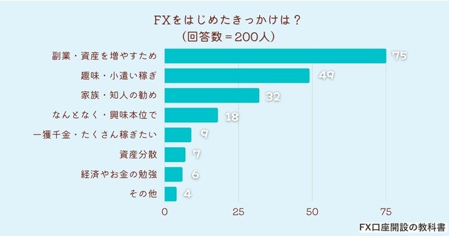 「FXをはじめたきっかけは?」とアンケート調査した結果、1位は『副業・資産を増やすため』でした。