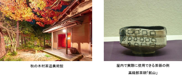 ライトアップ期間中、松雲山荘庭園内にある木村茶道美術館は、特別に開館時間を延長し、紅葉を眺めながら国宝級の茶器でお茶を楽しむことができます。