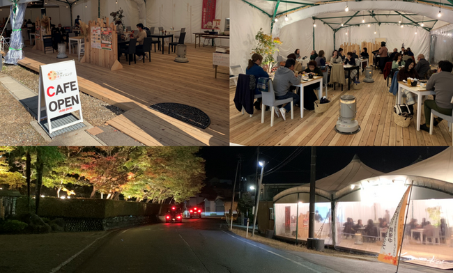 ※予約制「紅葉ダイニングディナー」開催日はテント内が貸切になるため、カフェは16:30で閉店となります。