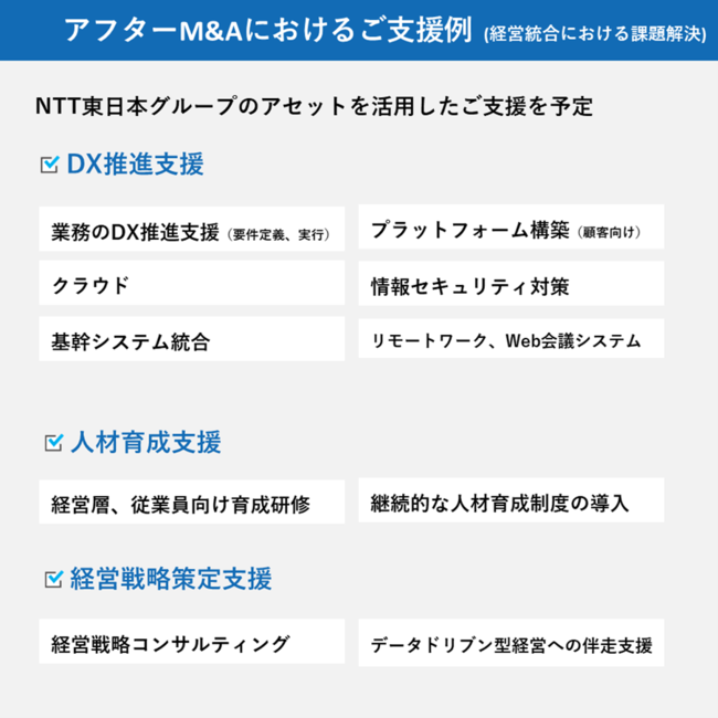 2. ストライクからM&A完了後(または完了前)の企業にNTT DXパートナーを紹介し、NTT DXパートナーから経営統合時のコンサルティングを実施する。