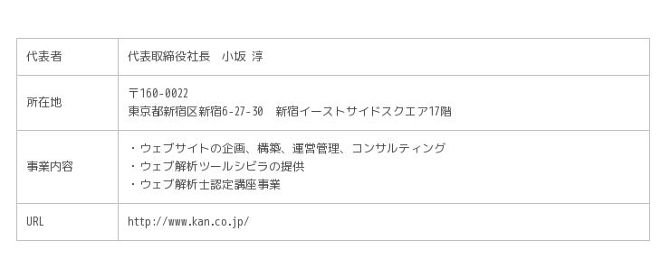 株式会社 環は、「誰もがチャンスをつかめる社会をつくる」というビジョンのもと、ウェブ解析事業会社として2000年に創業。ウェブ解析ツール事業、コンサル事業、教育事業の3つを展開しており、2013年6月よりソフトバンク・テクノロジーグループに参画。ウェブ解析の裾野を広げる活動として、国内最大級のウェブ解析の団体である一般社団法人 ウェブ解析士協会(WACA)の運営事務局も務める。自社の解析ツールは、累計2,500を超えるアカウント数を導入実績があり、これまでに全国で1万人を超える方々に対してウェブ解析に関する教育を実施。