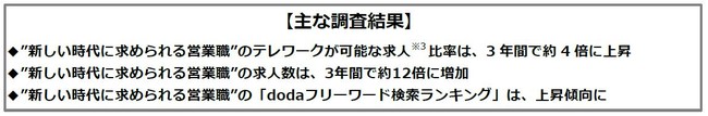 転職サービス「doda」、「第3回”新しい時代に求められる営業職”に関する調査」を実施「インサイドセールス」「カスタマーサクセス」職のテレワークが可能な求人は3年間で約4倍に上昇