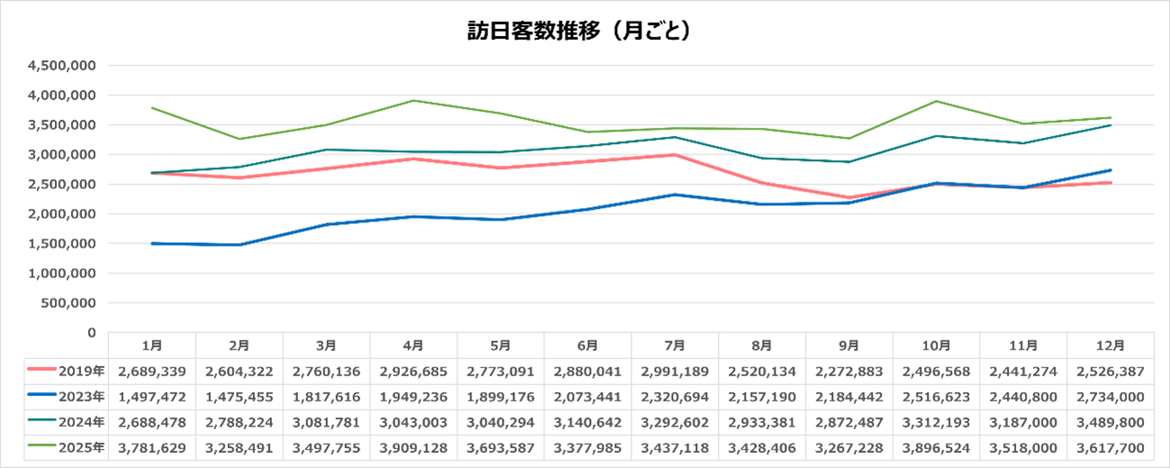 この度、2025年の訪日外国人の年間動向調査結果と、2026年の予測をまとめましたので、お知らせいたします。