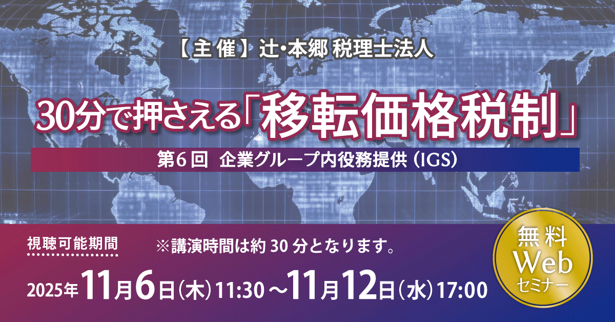 「30分で押さえる「移転価格税制」(第6回)企業グループ内役務提供(IGS)」無料Webセミナー開催