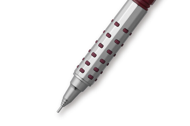 ぺんてるの自動芯出しシャープペンのアイデンティティを継承した、12角の上質でスタイリッシュなデザインに仕上げました。ノック部分は、ワンノックで書き始められるスタートボタンをイメージしています。ボディカラーには思考の邪魔をしない落ち着きのある4色(ダークレッド、ダークブルー、グレー、シルバー)を採用しています。