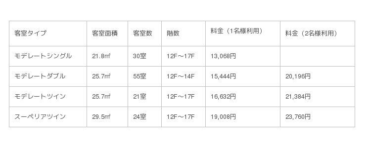 ・客室130室(スタンダードフロア12階〜17階) ※全客室数157室の約83%