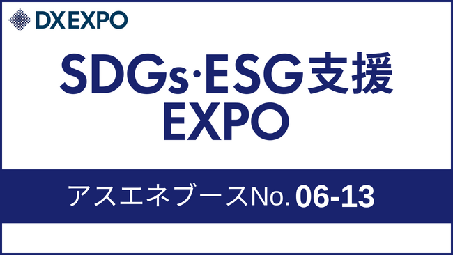 アスエネ株式会社(本社:東京都港区、代表取締役CEO:西和田 浩平、以下「当社」)は、7月11日(火)〜7月13日(木)に東京ビッグサイトで開催される「SDGs・ESG支援EXPO」に出展します。当社ブースでは、CO2見える化・削減・報告クラウド「アスゼロ」、持続的なサプライチェーン調達のESG評価サービス「ESGクラウドレーティング(ECR)」の紹介とともに、脱炭素経営のヒントとなる情報が得られるミニセミナーを実施します。また、7月11日(火)には、リアルセミナー「製造業×脱炭素経営」にて、Co-Founder&取締役COOの岩田が特別講演に登壇します。