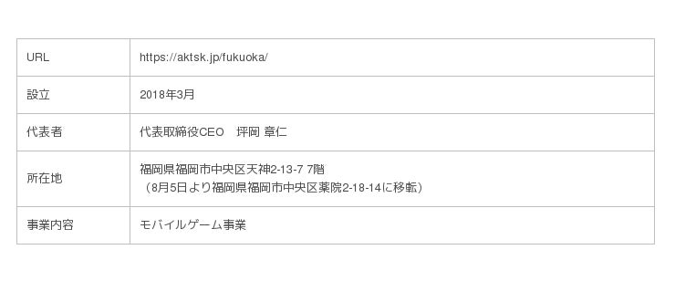 株式会社アカツキ(本社:東京都品川区、代表取締役CEO:塩田 元規、以下「アカツキ」)は、子会社の株式会社アカツキ福岡(本社:福岡県福岡市、代表取締役CEO:坪岡 章仁、以下「アカツキ福岡」)が8月5日にオフィスを移転することををお知らせいたします。