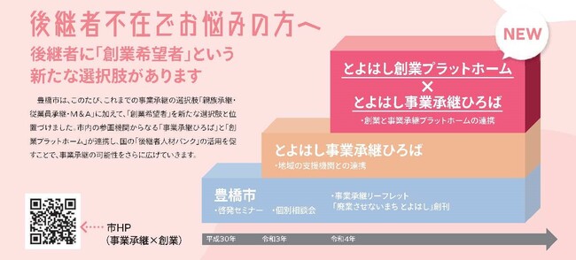 豊橋市は、事業承継の選択肢として親族承継や従業員承継、M&Aに加え、「創業希望者」を新たな選択肢に位置づけました。