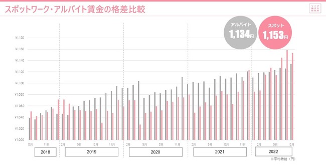 3.スポットワーカーの平均時給は1,153円。通常のアルバイト平均時給より19円高い