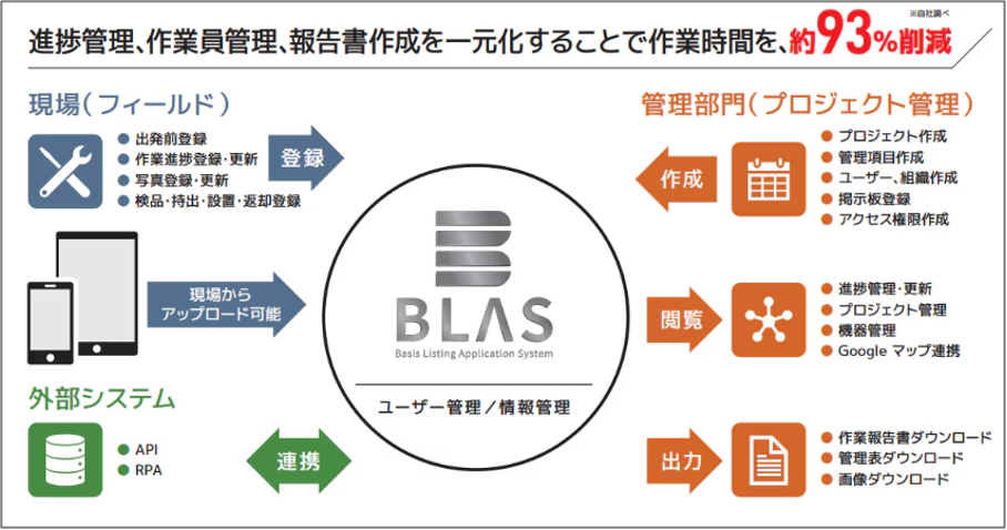 - プロダクト連携:BizStackとBLASのAPI連携による、施工から点検・保守までの業務一元化
