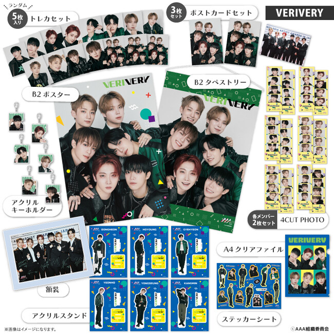 アクリルスタンド(全7種)/トレーディングカード5枚セット/4CUT PHOTO2枚セット(全7種)/ステッカーシート/B2ポスター/ポストカード3枚セット/A4クリアファイル/額装/アクリルキーホルダー(全7種)/B2 タペストリー