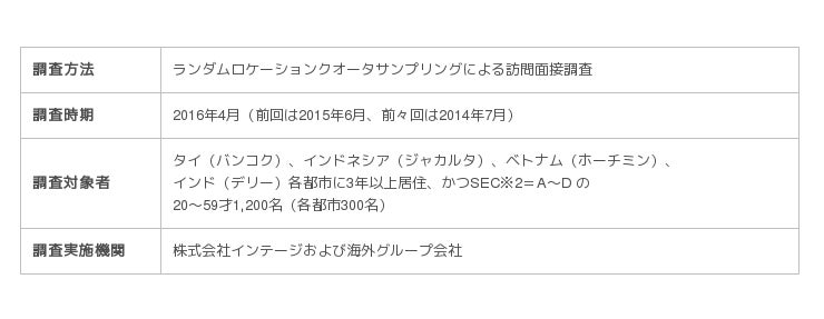 インテージグループが、毎年実施している自主企画調査です。生活・消費実態から、アジア各都市の生活者の意見、評価、認知を聴取しています。