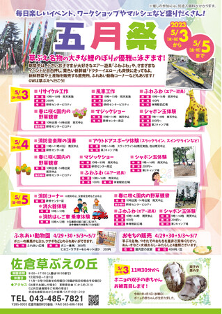 佐倉草ぶえの丘にて、「五月祭」を開催します。(5月3日(水・祝)〜5月5日(金・祝))