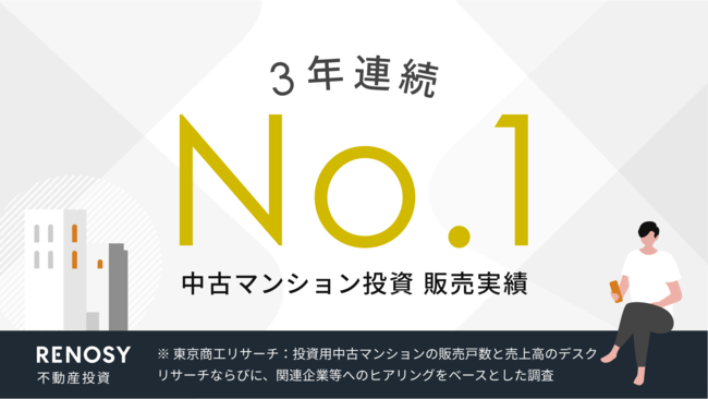 (※1)株式会社GA technologies「RENOSYの不動産投資、中古マンション投資の販売実績で3年連続となる全国No.1を獲得」(2022年4月7日発表) https://www.ga-tech.co.jp/news/12103/