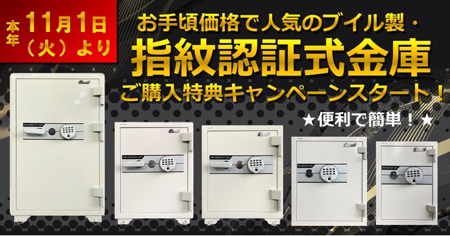本年11月1日(火)〜12月31日(金)までにブイル製・指紋認証式金庫をご購入のお客様に