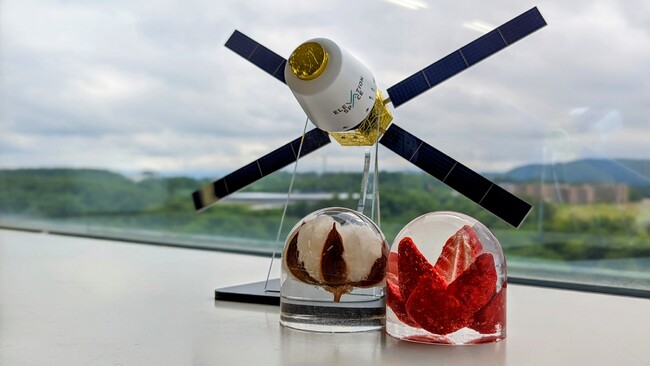 東北の民間企業初となる2025年打ち上げの人工衛星に、東北の名産品を搭載東北生まれのイチゴや綿花、会社ロゴの原典を宇宙に飛ばし地球をバックに記念撮影