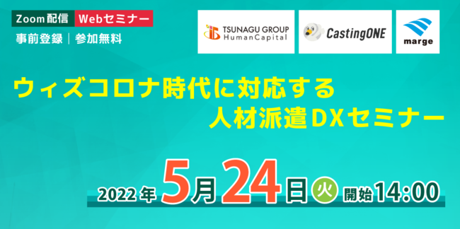 本セミナーでは、人材派遣会社のオンライン採用・DXを支援する株式会社ツナググループHC、株式会社CastingONE、株式会社マルジュが3社合同で、【人材派遣会社がウィズコロナ時代の求職者に対応する為のDX化】をテーマにお話します。