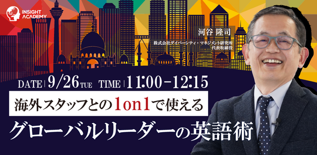 グローバル人材育成・研修業を手掛けるインサイトアカデミー株式会社(東京都港区、代表取締役:北村嘉章)は、無料webセミナー「【海外スタッフとの1on1で使える!】グローバルリーダーの英語術 」を開催します。