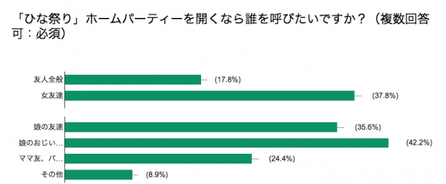 ■ひなまつりホームパーティーに呼びたい人は「おじいちゃん&おばあちゃん」「女友達」「娘の友達」