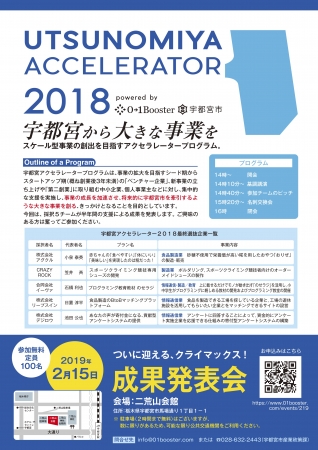 宇都宮市と01Boosterで運営する「Utsunomiyaアクセラレーター2018」の成果発表会(Demo Day)を2019年2月15日に開催