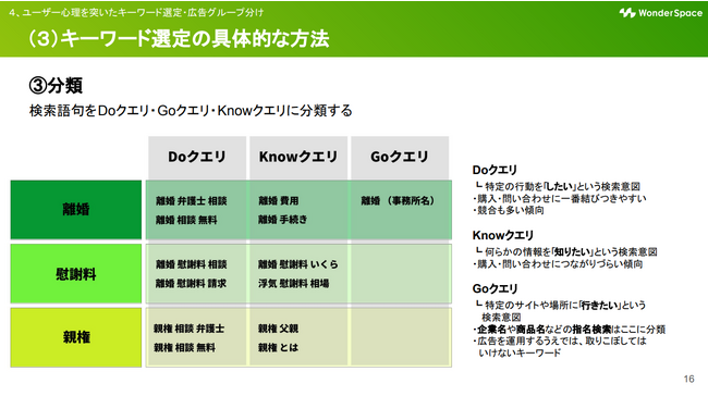 ユーザー心理を突いたキーワード選定・広告グループ分け
