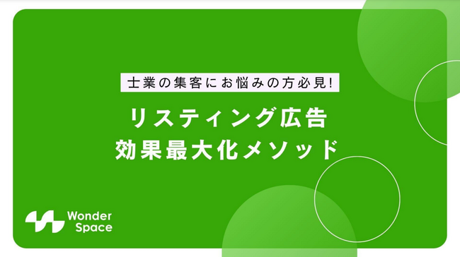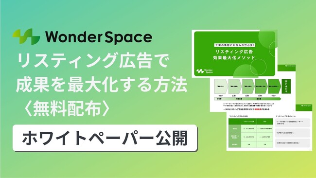 株式会社WonderSpace(本社:東京都港区、代表取締役社長:山本 尚宏)は、「リスティング広告で成果を最大化する方法」に関する資料ダウンロードを開始しました。