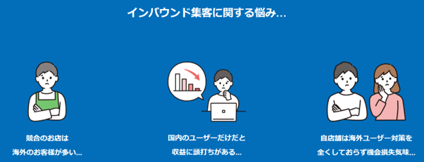 一方、国内の飲食店では、訪日外国人客が増加しても「英語が話せない」「外国語メニューが整っていない」「訪日外国人の予約に対応できない」といった悩みを抱える店舗が数多く存在します。