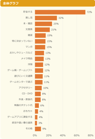 その他では「趣味のものに使う」「学校に使う費用」などの意見や、「プレゼント」といった家族や友達のために使うと答えた人もいました。