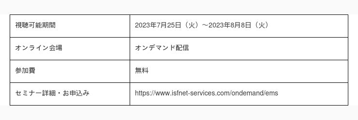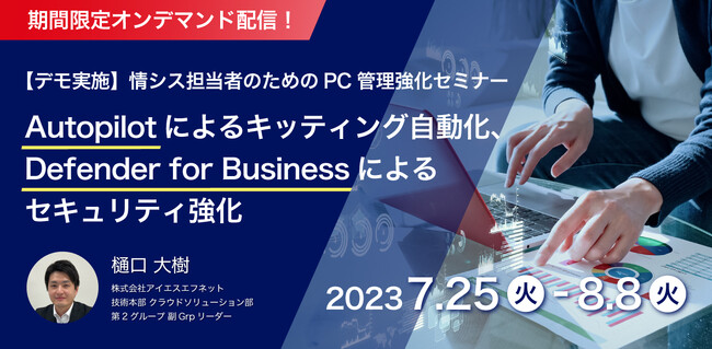 ITインフラソリューションを中心に、クラウド環境や、ネットワークシステムの構築・保守・運用におけるサービスを提供する、株式会社アイエスエフネット(本社:東京都港区、代表取締役:渡邉幸義、社員数:2,497名)は、2023年7月25日(火)〜2023年8月8日(火)の日程にて、【デモ実施】情シス担当者のためのPC管理強化セミナーを期間限定オンデマンド配信いたします。