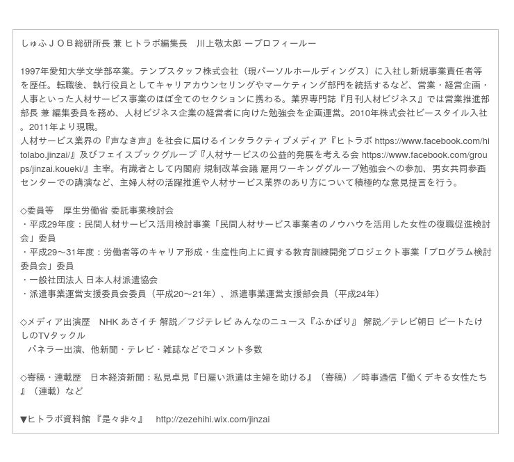 ■しゅふJOB総研 所長 川上敬太郎より