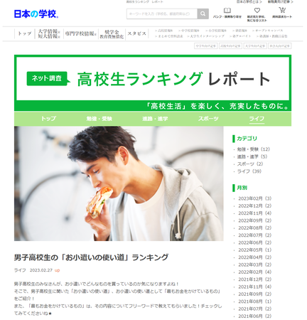 高校生ランキングレポート「男子高校生の「お小遣いの使い道」ランキング」:https://school.js88.com/koukousei/life/59