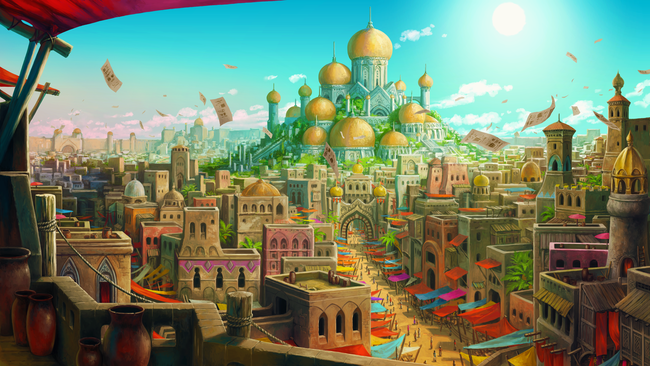 ようこそアビダールへ。ここは巨大なオアシスの真上に建てられた水と砂と魔法の都。観光客もめったに来ないし他の国との貿易もしてないので独自の文化が根付いておるのですよ。