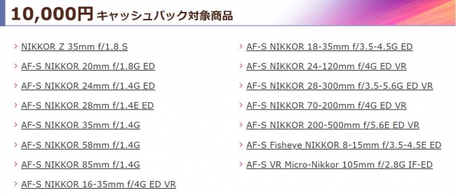 キャンペーン期間中に対象商品を購入し、ニコンイメージング会員の登録並びに製品登録(登録は無料)の上、所定の応募用紙に必要書類を揃えて応募された方全員に、キャッシュバックします。