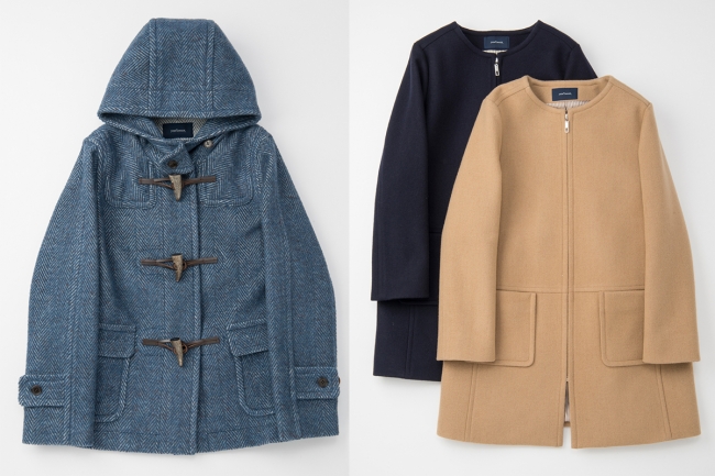 ■英国羊毛混ショートダッフルコート(左)