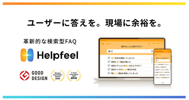 Helpfeel(ヘルプフィール:https://helpfeel.com/)とは、ユーザーが持つ疑問・課題を高速で解決できるFAQ検索システムです。ユーザーからの問い合わせへの回答が書かれたFAQに、Helpfeelを導入することで、ユーザーの自己解決を促進できます。またこれにより、カスタマーサポートセンターの運用を劇的に改善します。