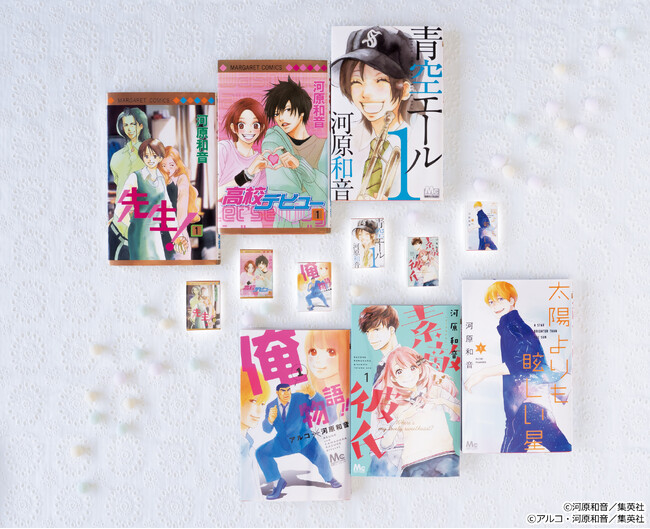4月は株式会社集英社が発行している「別冊マーガレット」で活躍中の河原和音先生の単行本コミックをミニチュア化した、『豆ガシャ本 「河原和音作品コレクション」』(1回500円・税10%込、全6種)と、宝島社のムック本、累計190万部突破の人気文具付録シリーズをミニチュア化した『豆ガシャ本 人気文具ムックコレクション』(1回500円・税10%込、全4種)を2024年4月第4週から順次、全国のガシャポンバンダイオフィシャルショップ、玩具売場、量販店、家電店などに設置されたガシャポン自販機シリーズにて発売いたします。