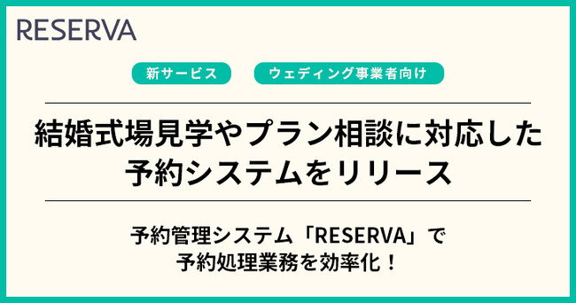RESERVAは、350業種以上に対応した業界最大級の予約システム。導入社数は27万社を超え、最近ではブライダル業界でも積極的に利用されている。ジューンブライドと呼ばれる6月や、9月〜11月の繁忙期を前に、結婚式の相談に対応するブライダルサロン、専門式場やホテルなど多くの事業者から要望を受けて、式場内覧・プラン相談に特化した予約受付システムのリリースに至った。