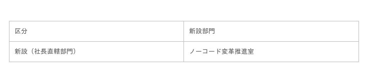 1.機構改革(2022年6月1日付)「ノーコード変革推進室」の新設