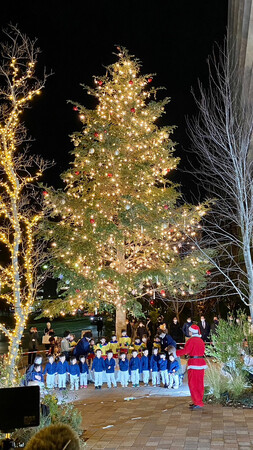 キラキラのイルミネーションを背景に、「ドルフィン・エイド保育園」の皆さんの合唱や生バンドの演奏をお楽しみいただけるほか、サンタクロースも登場し、お子さまには一足早いクリスマスプレゼント、大人の方にはホットなお飲み物をプレゼントいたします。ぜひご家族やお友達とお越しください。
