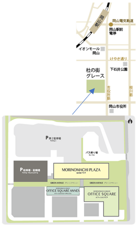 岡電バス・両備バス「山陽新聞社前・杜の街入口」バス停より徒歩1分