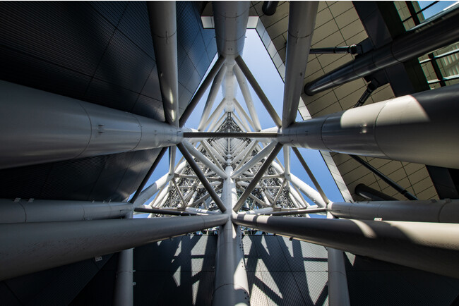 この心柱により、地震の際のタワーの揺れを最大50%低減することができ、強風時は約30%低減することができます。