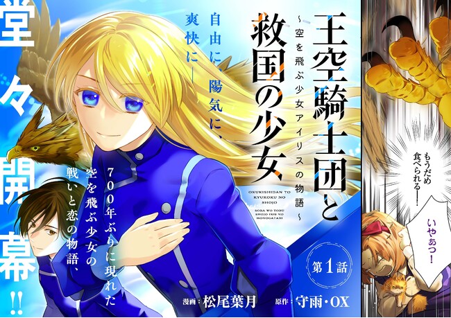 『王空騎士団と救国の少女〜空を飛ぶ少女アイリスの物語〜』(原作:守雨・OX 漫画:松尾葉月)の連載が本日3月28日(木)18時より開始となりました。