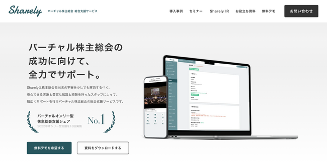 ハイブリッド参加型・出席型、バーチャルオンリー型のあらゆるバーチャル株主総会や決算説明会、オンラインイベントにも対応可能なクラウドシステムの提供に加え、バーチャル株主総会に合わせた招集通知やシナリオのレビュー、そして運営サポート等も提供しています。さらに、バーチャル株主総会中止保険や国内大手IRメディアとの議案訴求誘導枠の提供など新たな取組みを実施しています。