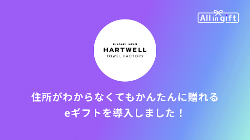 株式会社ハックルベリー(東京都世田谷区、代表取締役社長:安藤 祐輔、以下「ハックルベリー」)が提供する、通常ギフトはもちろん、住所を知らなくても贈れるeギフトにも対応したShopify(ショッピファイ)アプリ「All in gift」が1930年創業の日本を代表する今治タオルメーカーである「ハートウエル」様のオンラインショップ(https://hartwell.co.jp/)に導入されました。