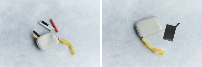 カードや名刺、鍵やイヤホンなど身の回りの小さなものをひとまとめにできるミニポーチです。カードや名刺がぴったり入るサイズで、じゃばら状に開くかたちが特徴です。こまごまとしたものを分類しやすいよう、内部は4つのゾーンに分かれています。